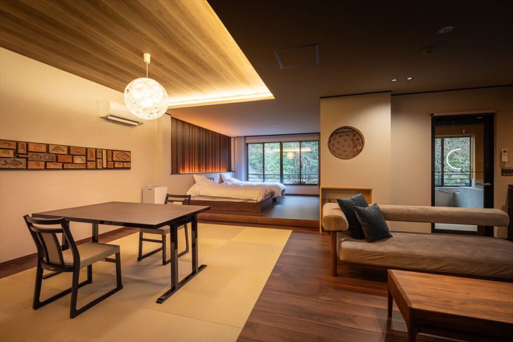 サウナの後は、広々とした客室でゆっくり。
